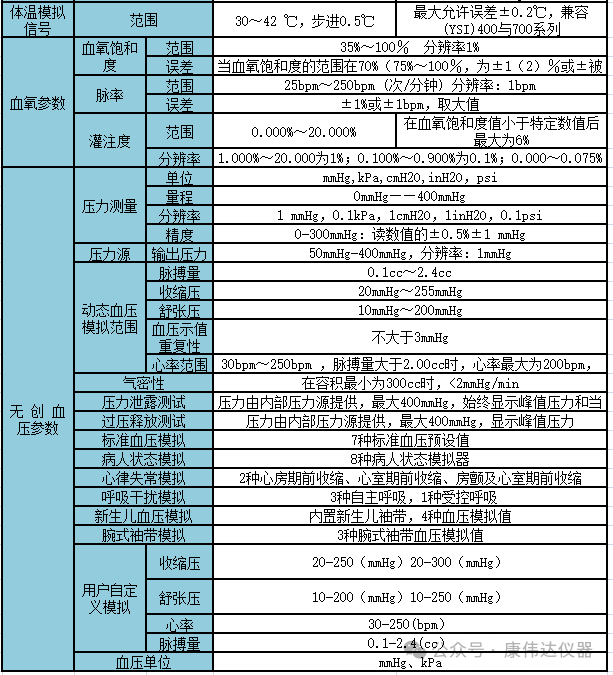 1. 康伟达仪器之生命体征综合模拟器(VISIS 8),集合心电、血压、血氧、呼吸、4通道有创血压、体温等参数的模拟信号输出;