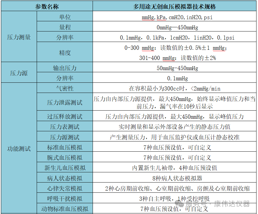 二、多用途无创血压模拟器技术规格:
