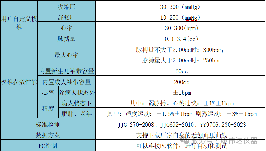 1、高性能:血压和脉率参数范围广; 2、多功能:8大测试,开启腕式自定义; 3、标准测试:JJG 270-2008、JJG692-2010、YY9706.230-2023; 4、易操作:全触屏操作; 5、零噪音:全程测试无噪音,全球首创; 6、数据方案:支持下载厂家自身的无创血压曲线; 7、PC控制:可支持自动化测试。